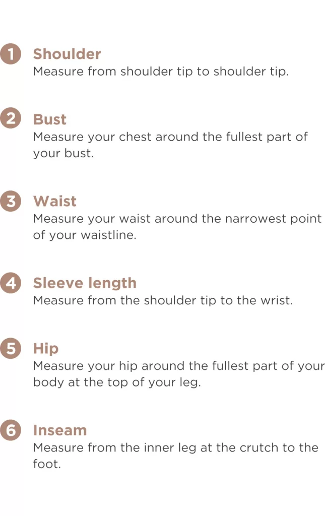 To find the perfect Checkoutb fit, please measure yourself directly according to the following instruction. Then use the size guide on the product page and garment measurements to help you find the best fit.
